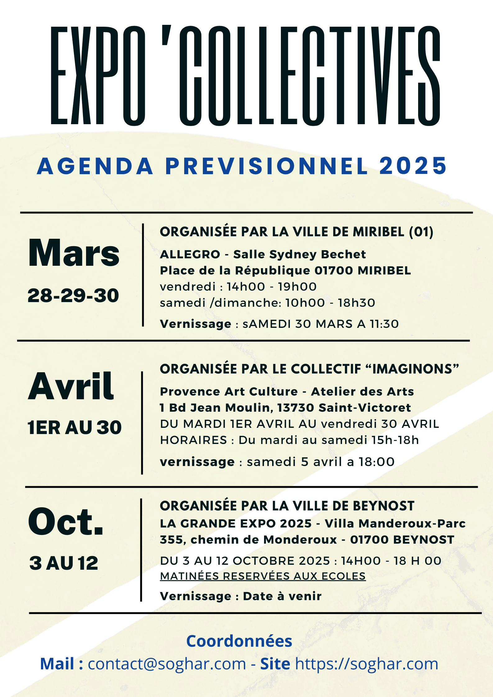 2025 – Exposition collective (28/29/30 mars), Salle Allegro – Miribel (Ain)